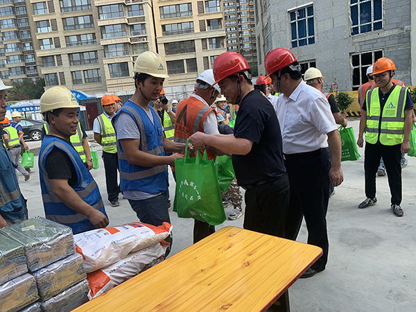 市长于立忠一行为大家送来了毛巾、防暑降温饮品等消暑物品,感谢大家为建造和谐社会、美好家园在高温酷暑中依然坚守,为祖国、为家乡做贡献,同时也希望大家立足本职工作,继续发扬特别能吃苦、特别能战斗的主力军作风,展现新时期星空体育铁军队伍特有的风采,并反复叮嘱大家一定要安全施工,合理安排作息时间,劳逸结合,保重身体,做好防暑降温措施。