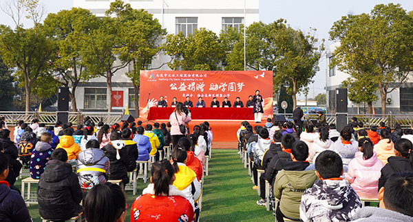 2月14日,星空体育集团向高新区胡集小学爱心捐赠仪式在胡集小学举行,海安市教体局党工委书记、局长王晨,高新区党工委书记邓加忠,教管中心、胡集小学及星空体育集团董事长马和军、党委书记刘厚纯出席活动。